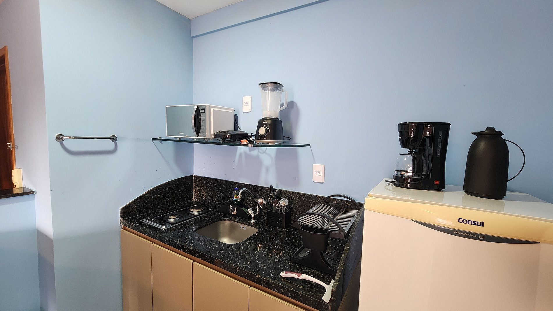 You will find the best in terms of comfort and convenience. The flat has modular single beds, with spacious closets and bed and bath linen included. The Kitnet standard kitchen has a refrigerator, 2-burner cooktop stove, microwave, blender, sandwich maker and necessary items for up to 3 people, completing the scenario of practicality and elegance.