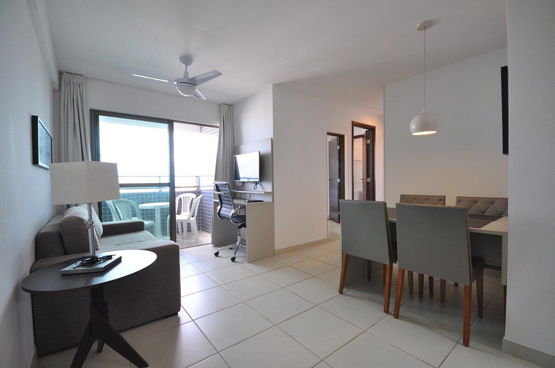 Apartment Features: - Living room with 2 rooms with sofa bed; - Balcony with protective screen; - 2 bedrooms (1 suite and 1 guest room); - 1 bathroom; - Full kitchen with all utensils; - Service area; - Cable TV and Wi-Fi and hairdryer; Enterprise Infrastructure: - Leisure area on the roof with 360º views of Recife; - 3 swimming pools (Olympic lane, adult and children); - Steam room; - Football field; - Party hall and playground; - Academy; - 3 elevators and gas plant; Available Services: - 24-hour receptionists and concierge for your comfort; - Laundry; - Personalized service with our specialized team; Additional Information: - Daily cleaning is not included; - Check-in after 2pm, check-out before 12pm; - Early check-in or Late check-out, upon request (fees may apply) Discover the best of Boa Viagem with all the support and convenience you deserve! Your Satisfaction is Our Priority!