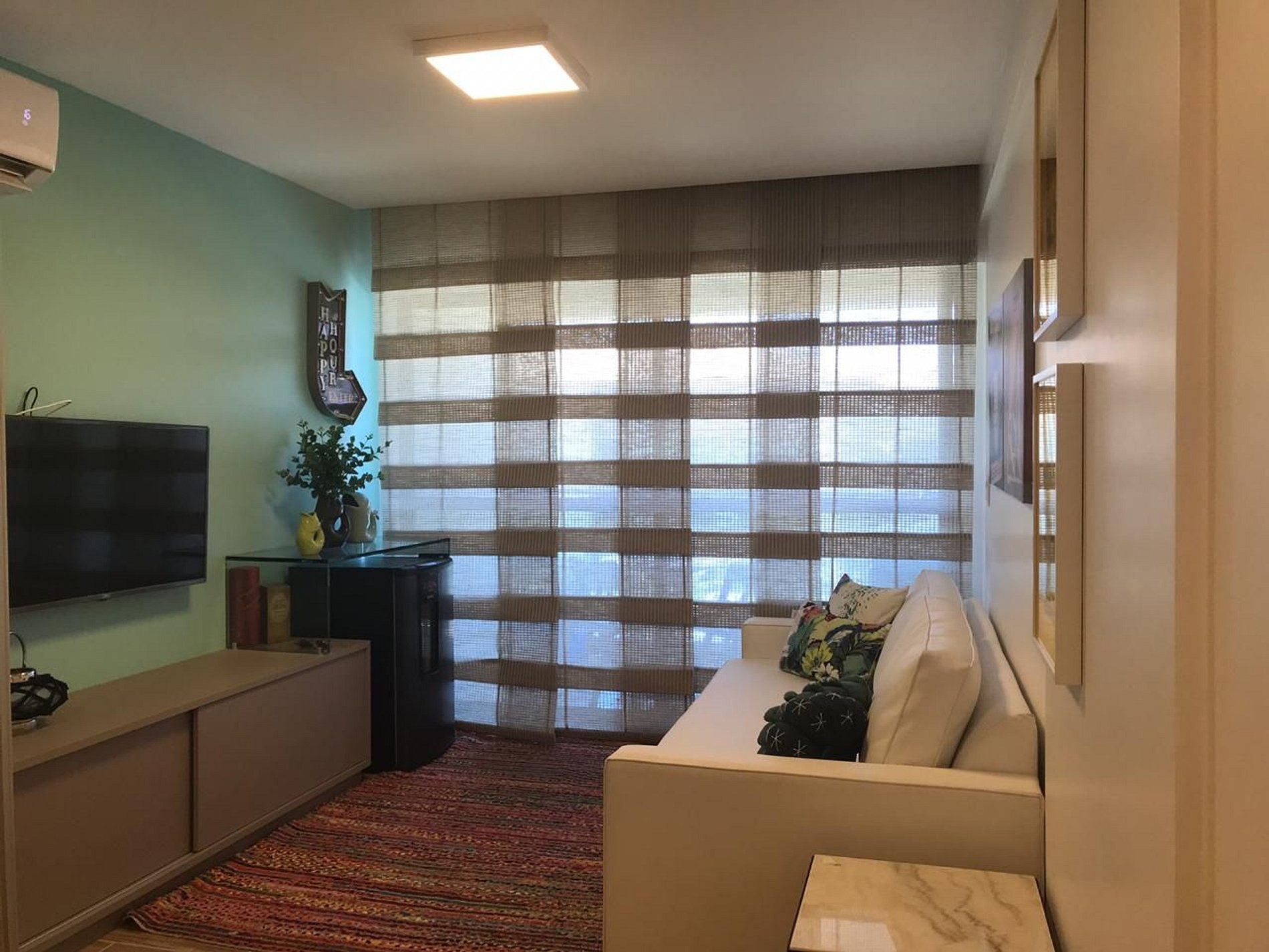 Tive um feriado excepcional com minha família no flat. Bem espaçoso, bem decorado, exatamente como mostram as fotos. Todos os eletrodomésticos novos e em perfeito funcionamento, cama confortável. A estrutura do condomínio é excelente, inclusive para crianças. Apenas senti falta de serviço de restaurante na área da piscina e de uma lojinha de conveniência para compras de última hora.