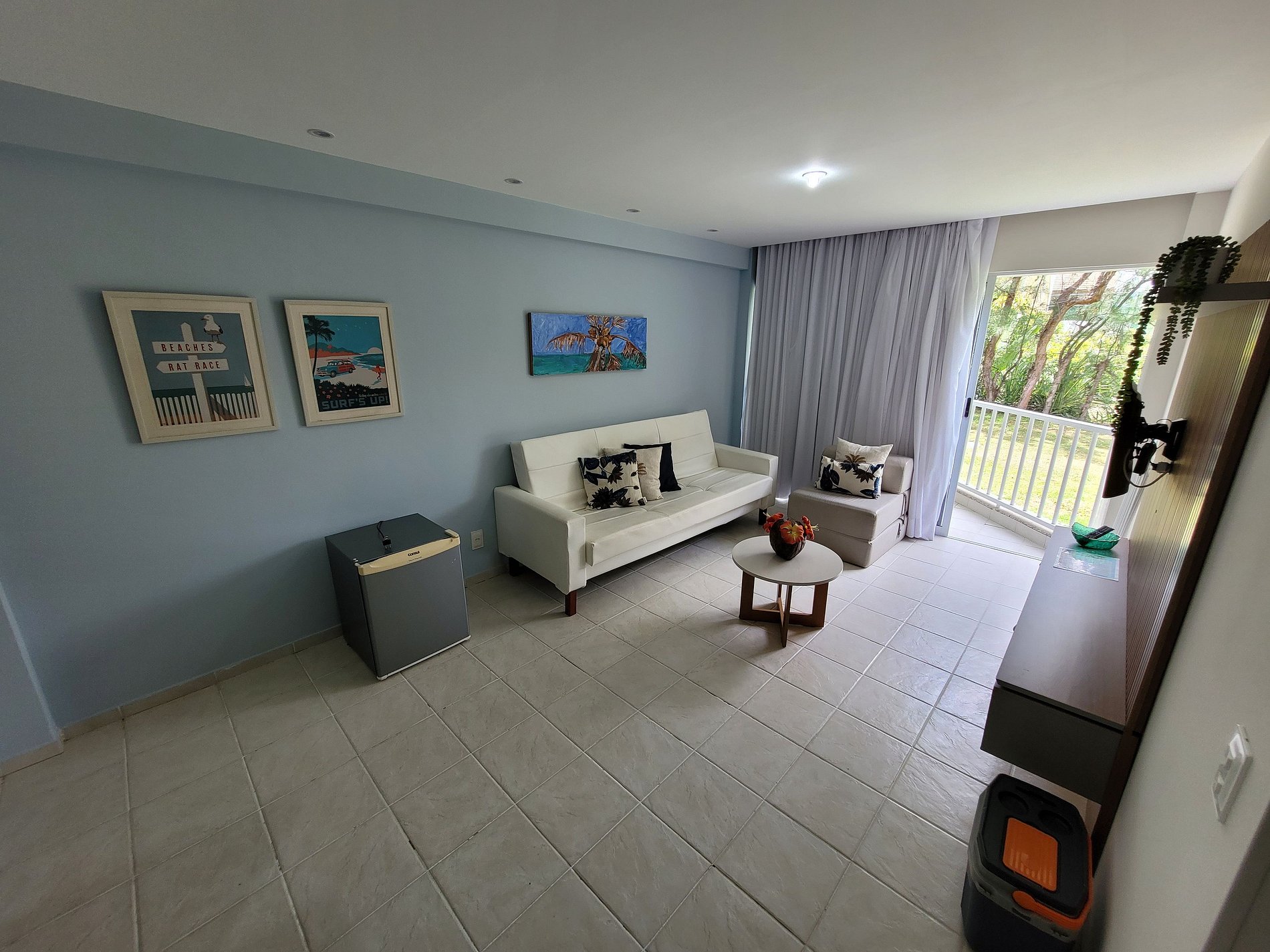 O flat fica localizado no melhor trecho de praia de Muro Alto com areias brancas e piscina natural. O flat é completo com cozinha, ar condicionado na sala e no quarto e banheiro com chuveiro quente/frio. Existe serviço de restaurante até às 20h e a comida é bem saborosa.