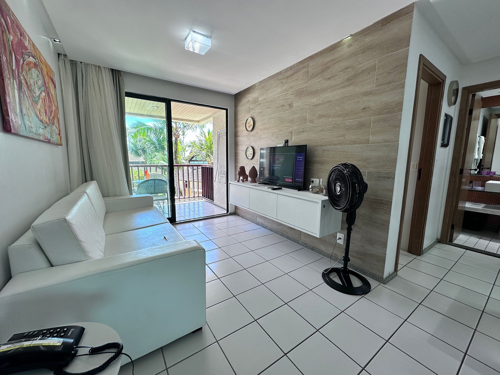> Experimente el confort y la elegancia en Marulhos Resort, donde su descanso y ocio es nuestra prioridad. Este hermoso apartamento, ubicado en primera línea de mar, ideal para disfrutar momentos de relax, ofreciendo todo lo necesario para una estadía memorable, cuenta con un balcón espacioso y ventilado que brinda una vista impresionante de las piscinas y el mar de Porto de Galinhas. > Características del Apartamento: - Apartamento espacioso y bien decorado, con capacidad para 6 personas cómodamente; - Amplio salón, amueblado y decorado con sofá cama (estilo cama de matrimonio), con Smart TV de 42 pulgadas y aire acondicionado. - Recámara con cama Queen Size, TV LED de 28 pulgadas, closets y aire acondicionado para tu comodidad. - Cocina con todos los utensilios necesarios, vitrocerámica, frigorífico y electrodomésticos como sandwichera, batidora, microondas, cafetera eléctrica y horno eléctrico. - Baño completo: con box Blindex, ducha de agua fría/caliente y secador de pelo para tu comodidad. - Balcón con vista al mar y piscinas con mesa y sillas.