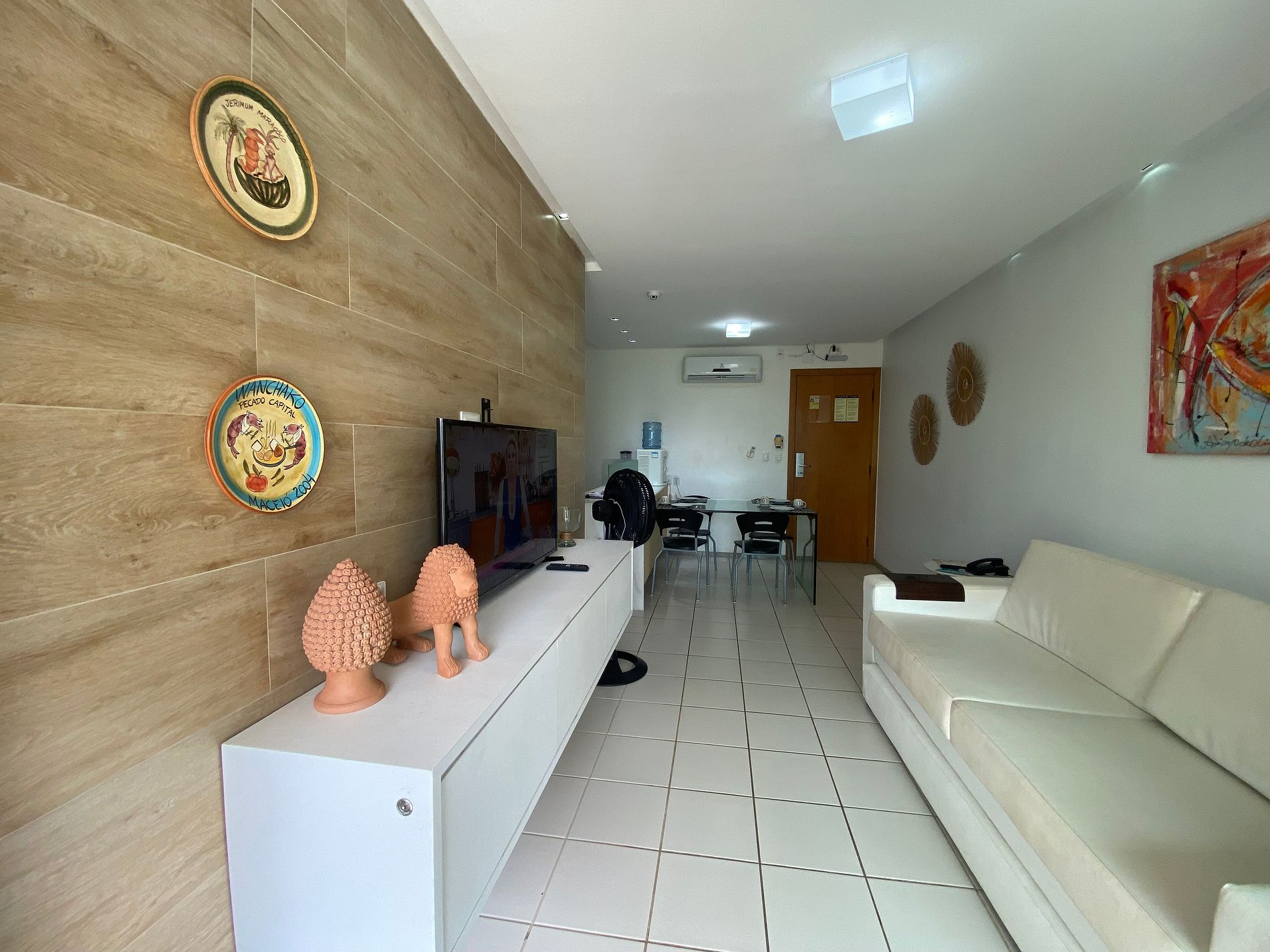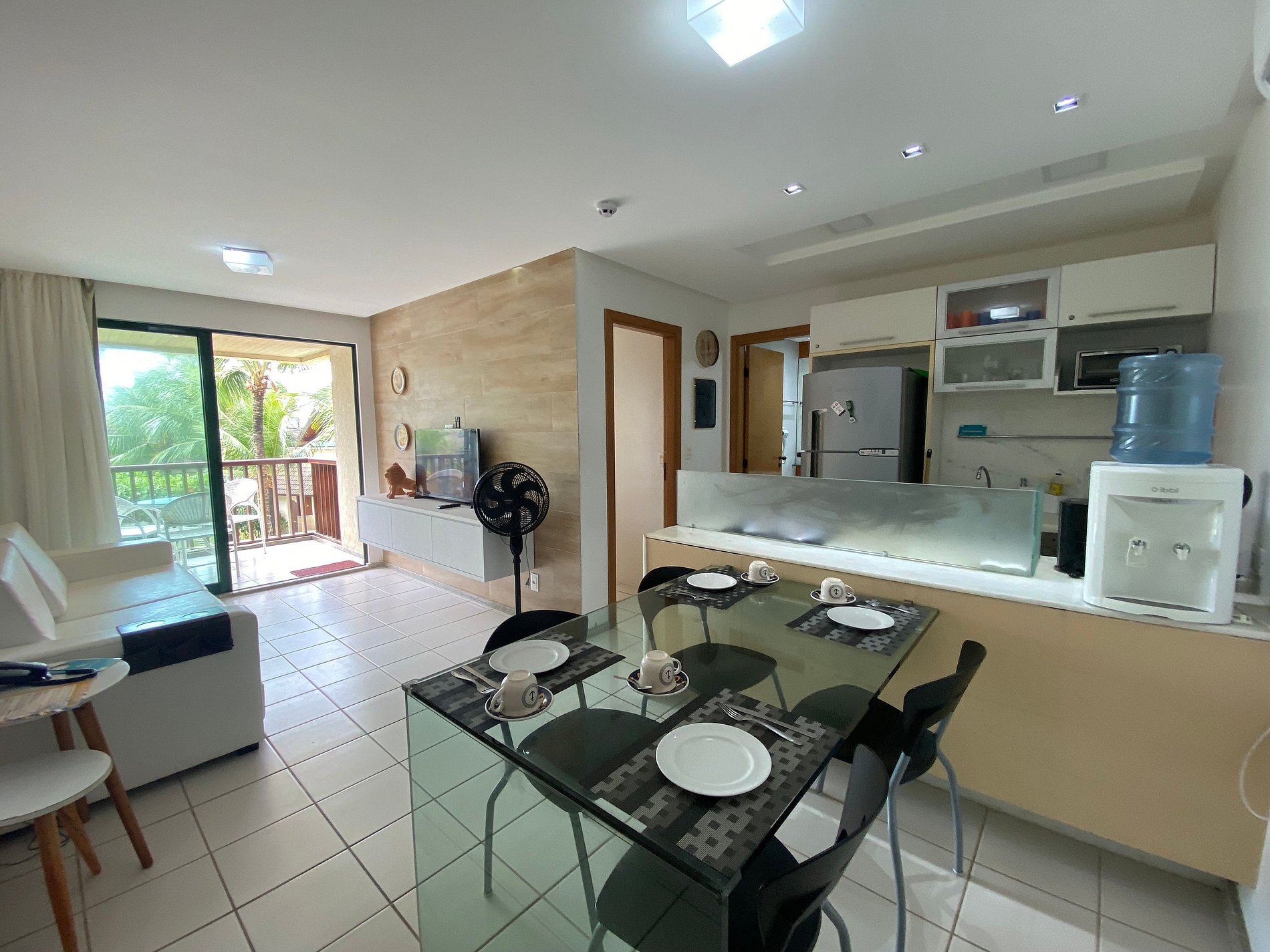 > Experimente el confort y la elegancia en Marulhos Resort, donde su descanso y ocio es nuestra prioridad. Este hermoso apartamento, ubicado en primera línea de mar, ideal para disfrutar momentos de relax, ofreciendo todo lo necesario para una estadía memorable, cuenta con un balcón espacioso y ventilado que brinda una vista impresionante de las piscinas y el mar de Porto de Galinhas. > Características del Apartamento: - Apartamento espacioso y bien decorado, con capacidad para 6 personas cómodamente; - Amplio salón, amueblado y decorado con sofá cama (estilo cama de matrimonio), con Smart TV de 42 pulgadas y aire acondicionado. - Recámara con cama Queen Size, TV LED de 28 pulgadas, closets y aire acondicionado para tu comodidad. - Cocina con todos los utensilios necesarios, vitrocerámica, frigorífico y electrodomésticos como sandwichera, batidora, microondas, cafetera eléctrica y horno eléctrico. - Baño completo: con box Blindex, ducha de agua fría/caliente y secador de pelo para tu comodidad. - Balcón con vista al mar y piscinas con mesa y sillas.