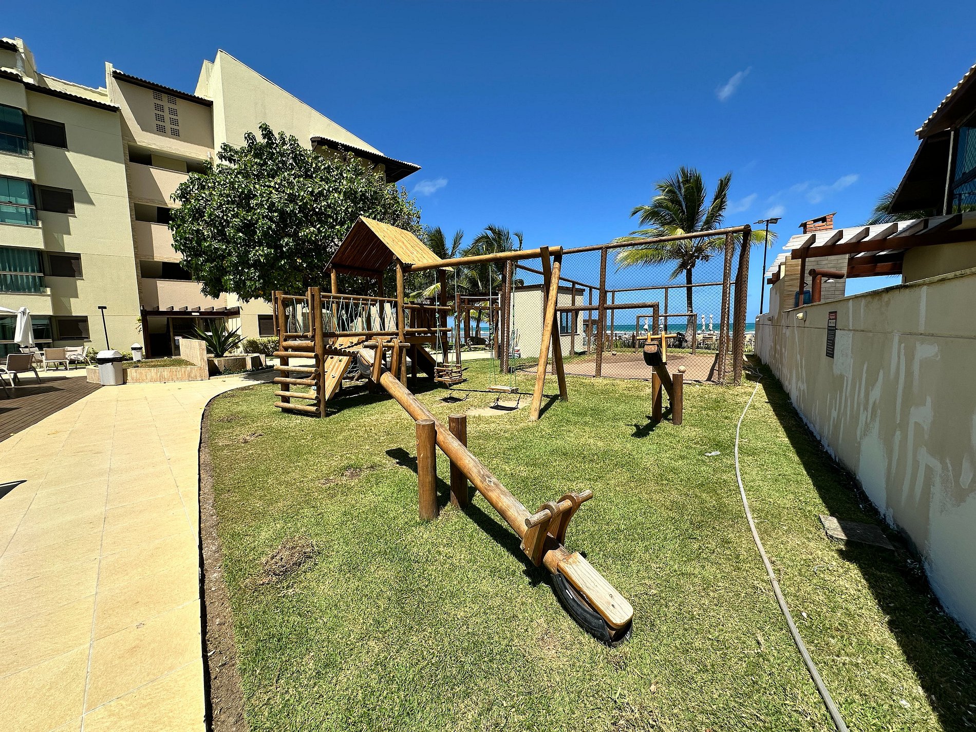 With direct access to the beach with warm, crystal-clear waters, the condominium features three swimming pools, a fully equipped gym, children’s playground, hammock area, beautiful gardens, and seating facing the sea, providing unique moments of leisure and relaxation.