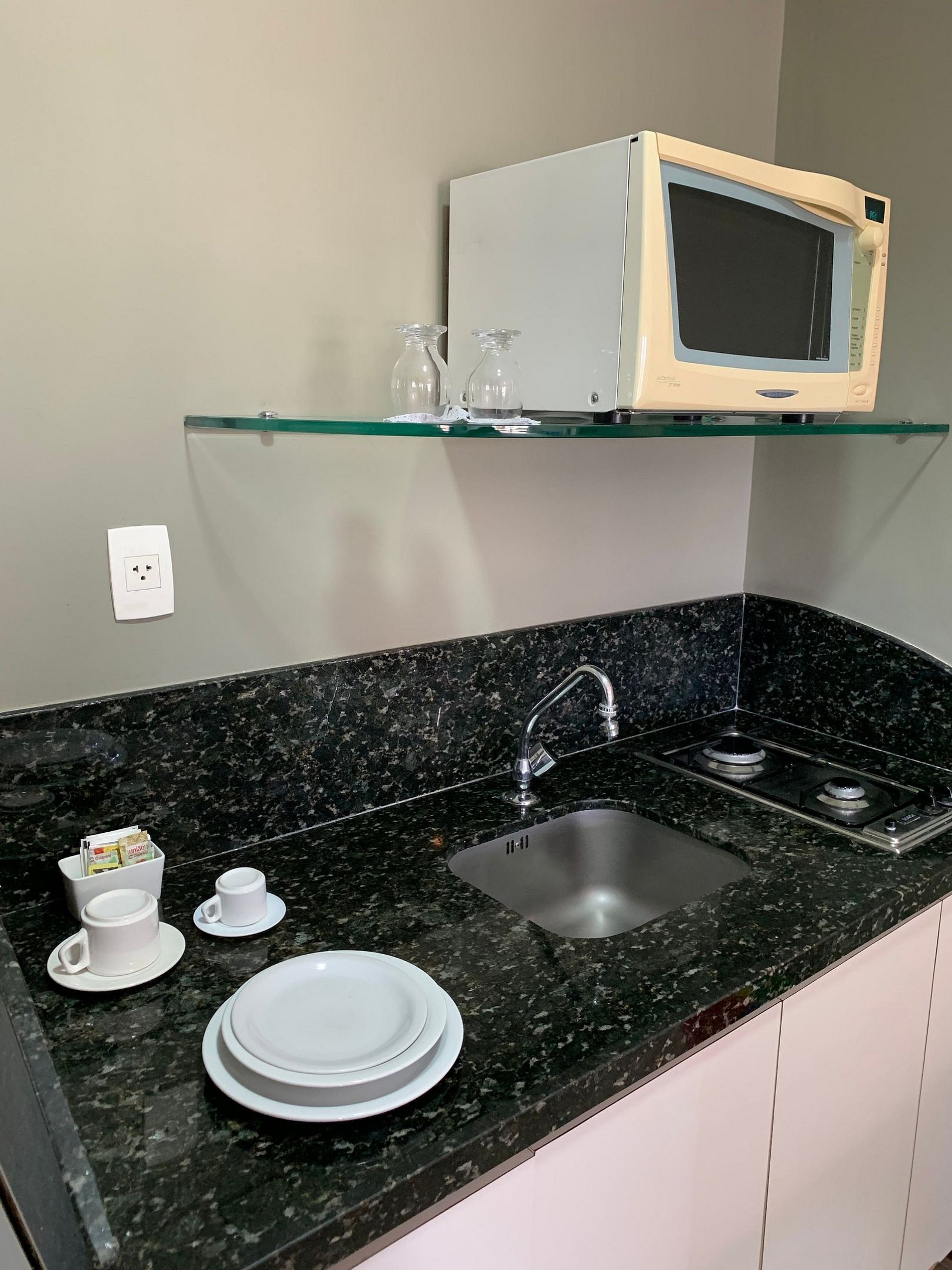 Nossas comodidades incluem academia de ginástica, restaurante, piscina*, self market e estacionamento gratuito. Além disso, oferecemos Wi-Fi gratuito compartilhado e uma recepção 24 horas para garantir sua comodidade a qualquer momento.