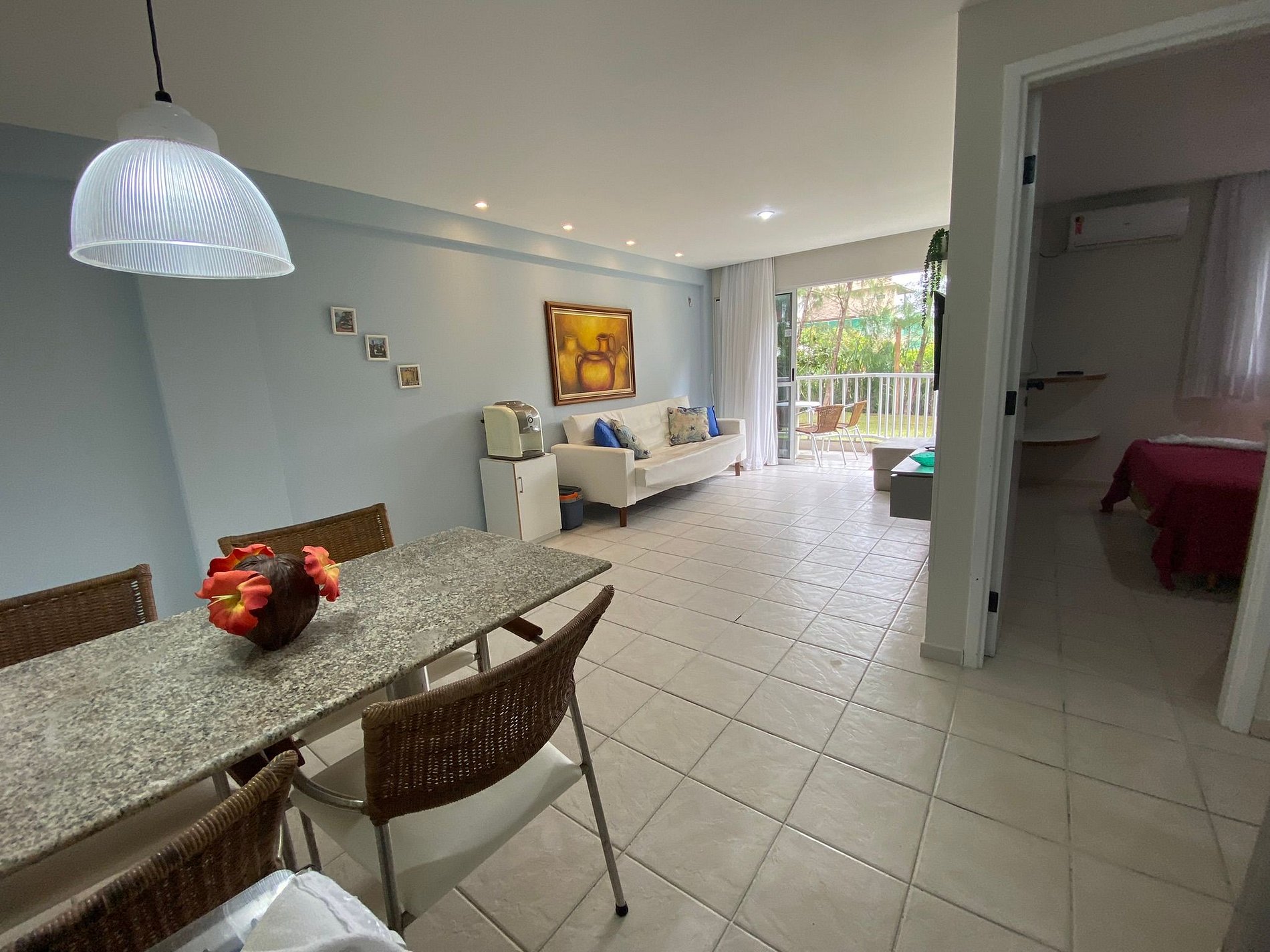- Sala ampla, mobiliada e decorada com sofá-cama casal+ sofá-cama solteiro com Smart TV e ar-condicionado Split;