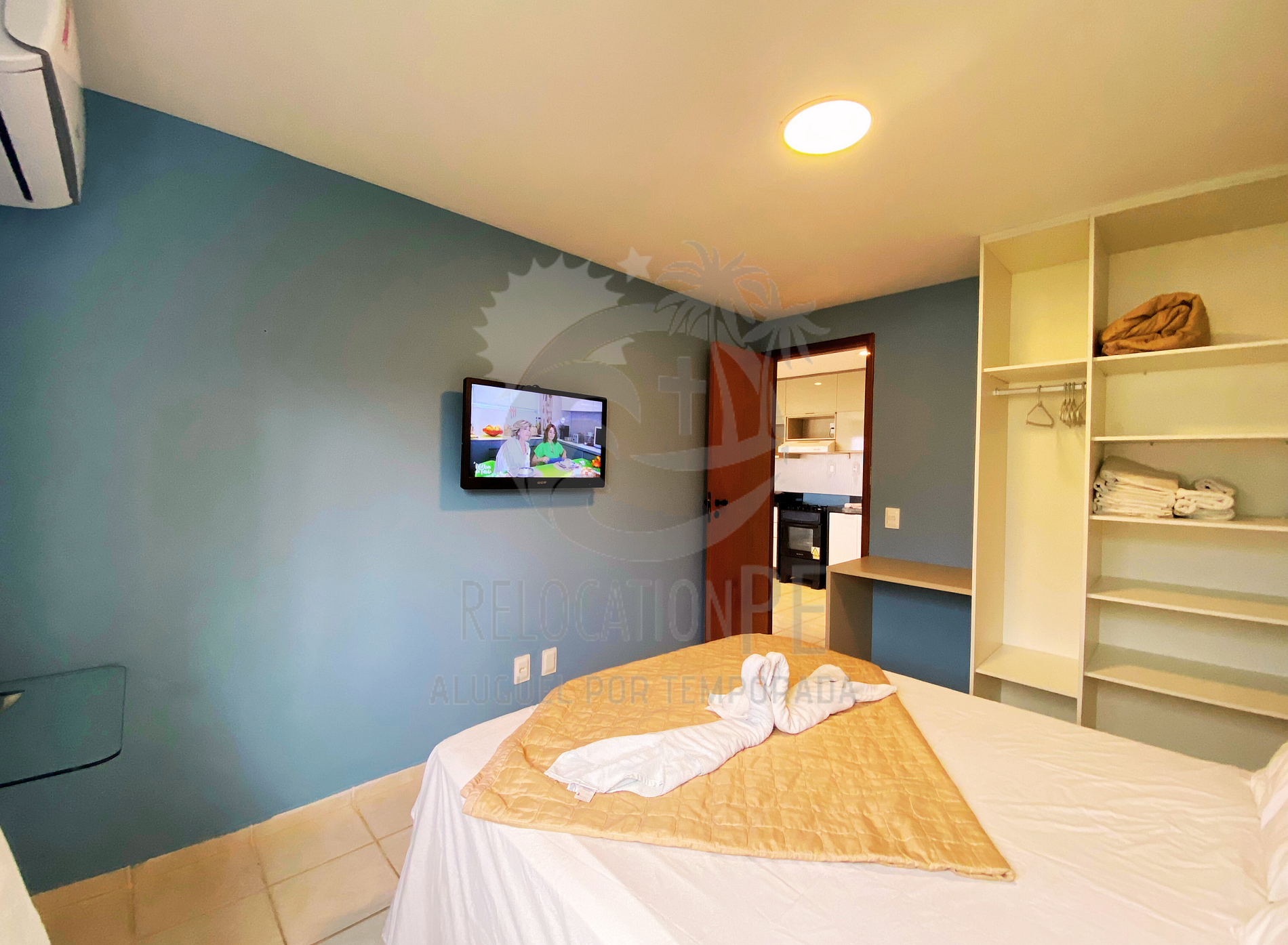 - 1 quarto com cama Queen Size, TV LED 28 polegadas e ar-condicionado 9000BTUS