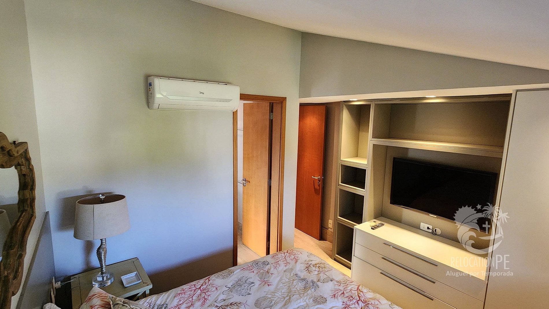 - 1 Suíte com cama Queen, TV, Ar-condicionado e armários no Térreo;