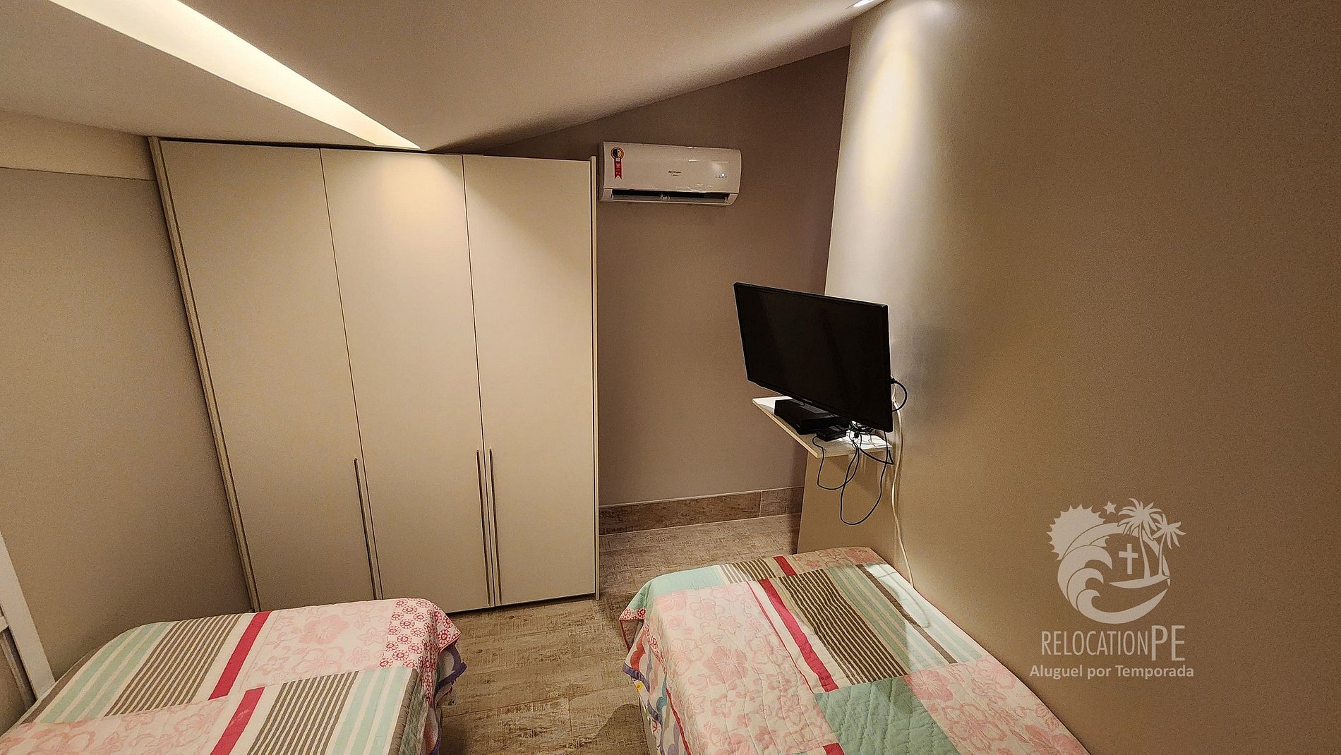 - 1 Suíte com duas camas de solteiro, TV, Ar-condicionado e armários no 1º andar;