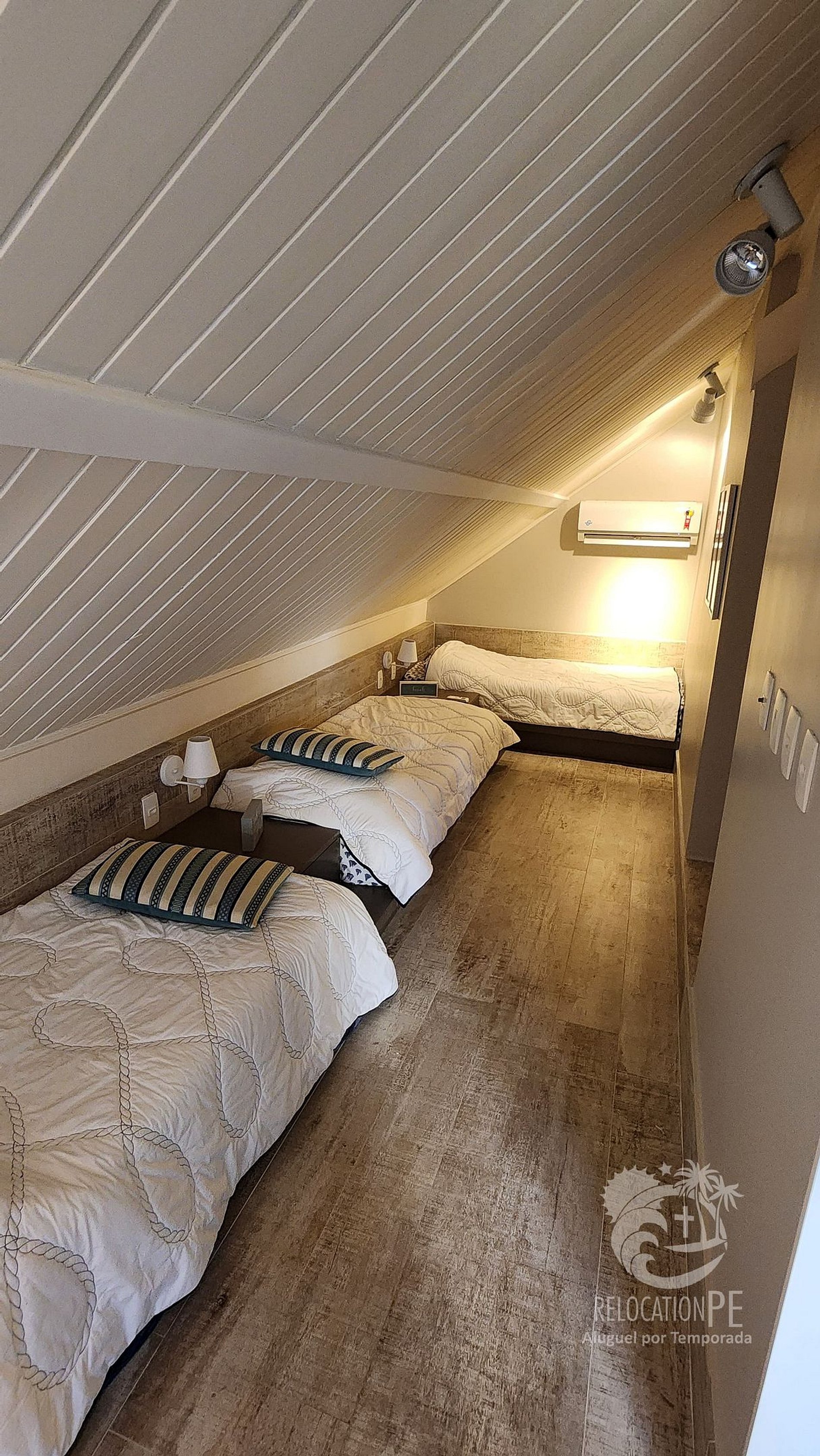 - 1 Suíte com quatro camas de solteiro, Ar-condicionado e armário no 1º andar;