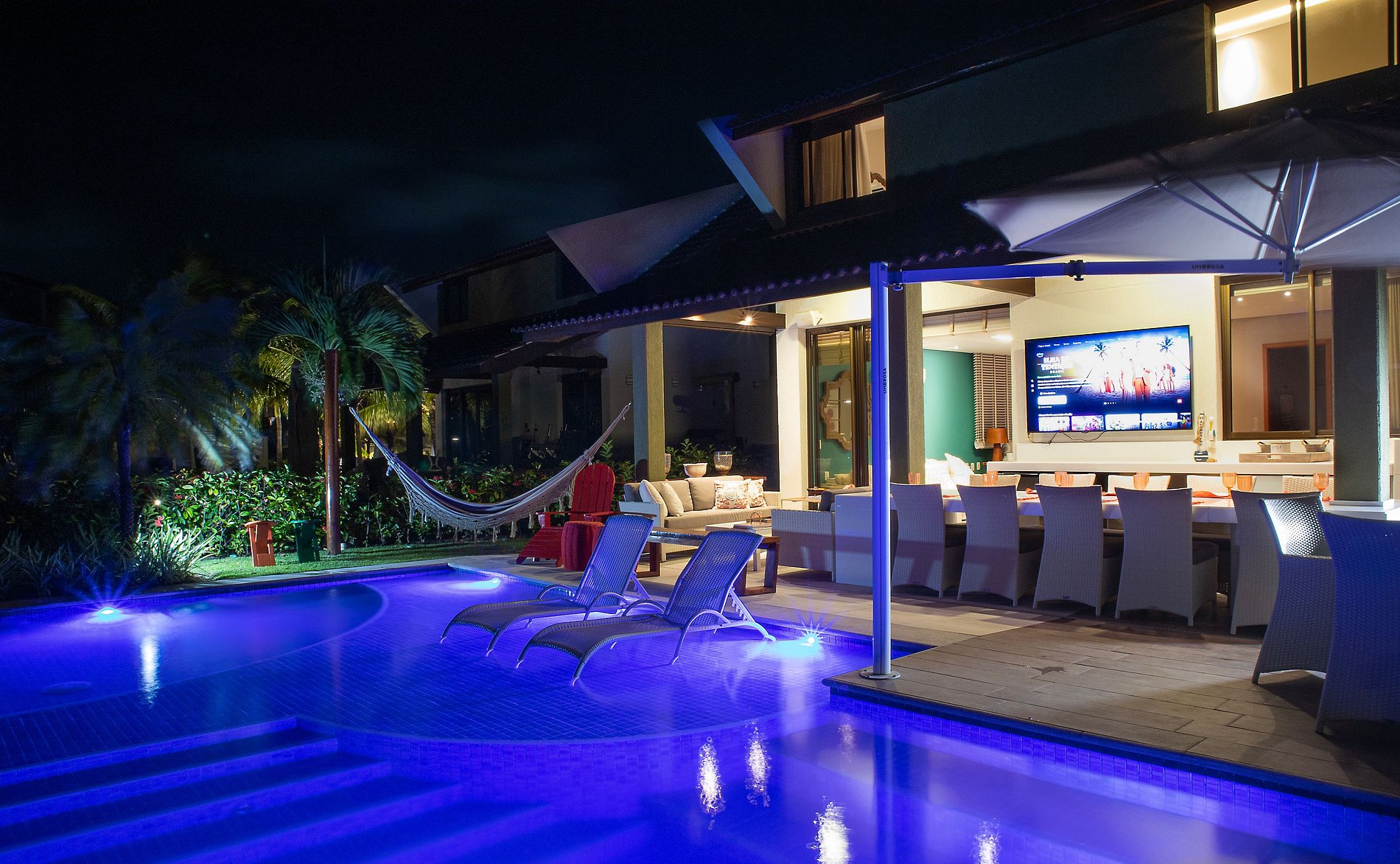 - Área gourmet equipada com churrasqueira, cervejeira, adega, mesa para refeições(10 pessoas), TV Home Theater 75 polegadas, rede de descanso, piscina privativa com umbrelones, espreguiçadeiras, e mesa de apoio com 4 cadeiras.