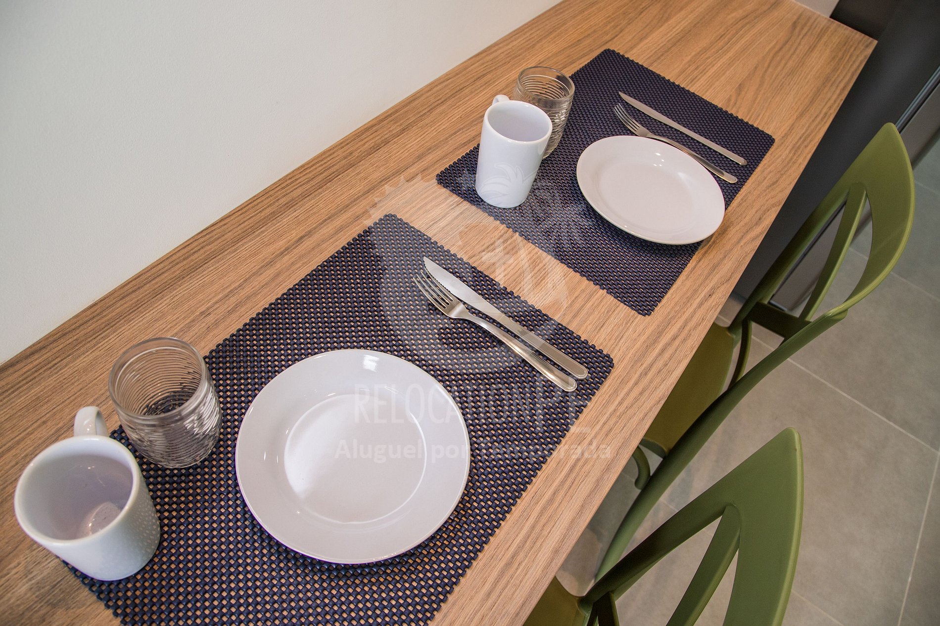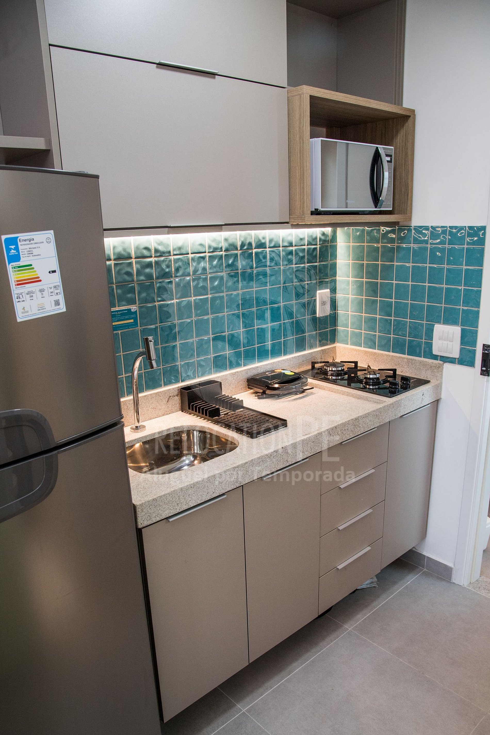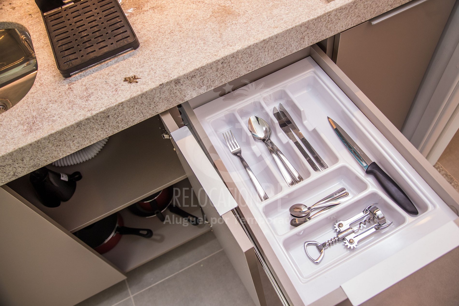 - Cozinha completa com mobiliado planejado sob medida, refrigerador duplex, cooktop a gás, air fryer e demais eletrodomésticos e utensílios necessários;