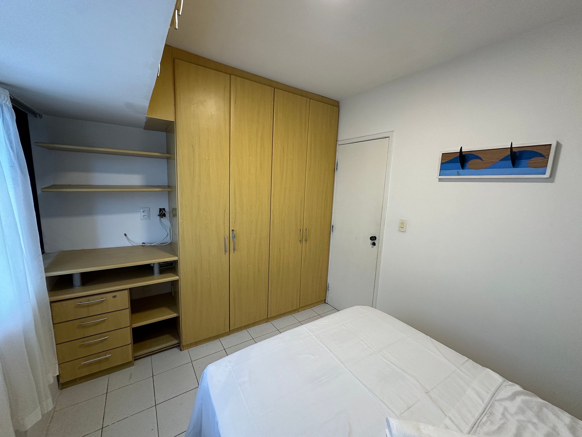 - Quarto com cama de casal queen confortável e ar condicionado;